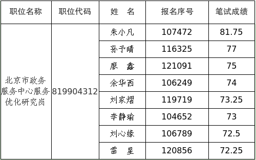 本次面试考生成绩将在北京市人事考试通用平台公布,考生可凭报名时的用户名和密码自行登录查询。